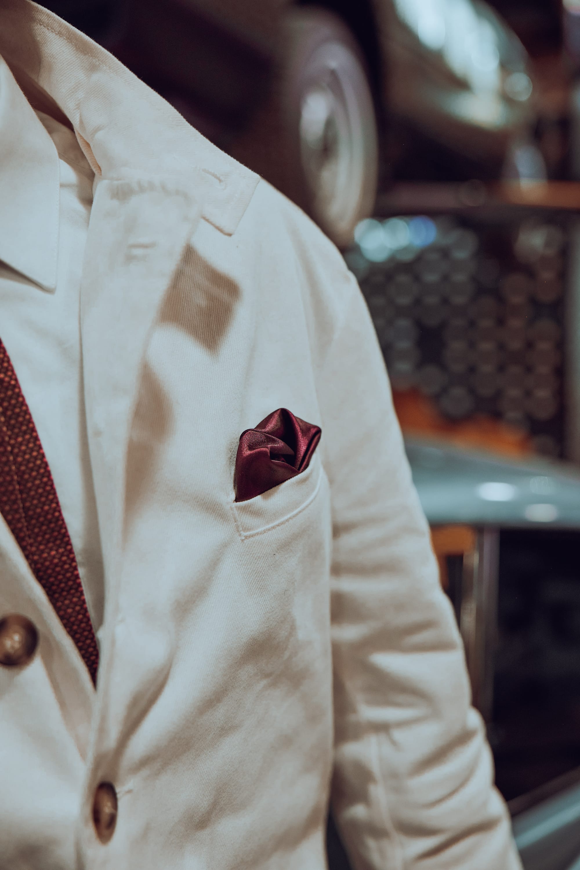 Der Taschenbeutel der Brusttasche ist mit lila Futter gefertigt und übernimmt, herausgezogen, die Funktion eines Einstecktuchs für feierliche Anlässe. Die Rückenpartie hat zwei Bewegungsfalten für maximale Bewegungsfreiheit bei großen Lenkeinschlägen. Die Ärmel haben Umschlagmanschetten, die heruntergeklappt den Handrücken schützen. Der Kragen ist innen mit einem zusätzlichen Windfang aus Strick konstruiert. Die Knöpfe in Hornoptik erinnern an die Armaturenbretter von damals und schonen den Autolack bei anfallenden Reparaturen. Am rechten Oberschenkel befindet sich die Tool- und Handytasche. Vorne und hinten hat der Overall jeweils zwei gepaspelte Eingrifftaschen.